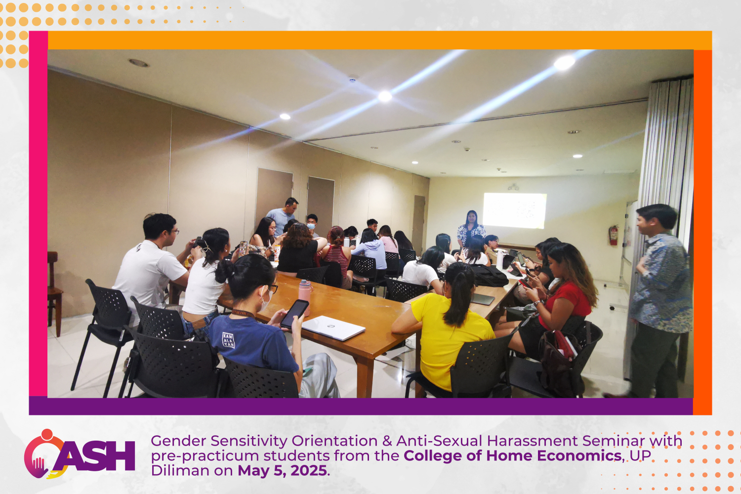 Gender Sensitivity Orientation & Anti-Sexual Harassment Seminar with pre-practicum students from the College of Home Economics, UP Diliman on May 5, 2025.